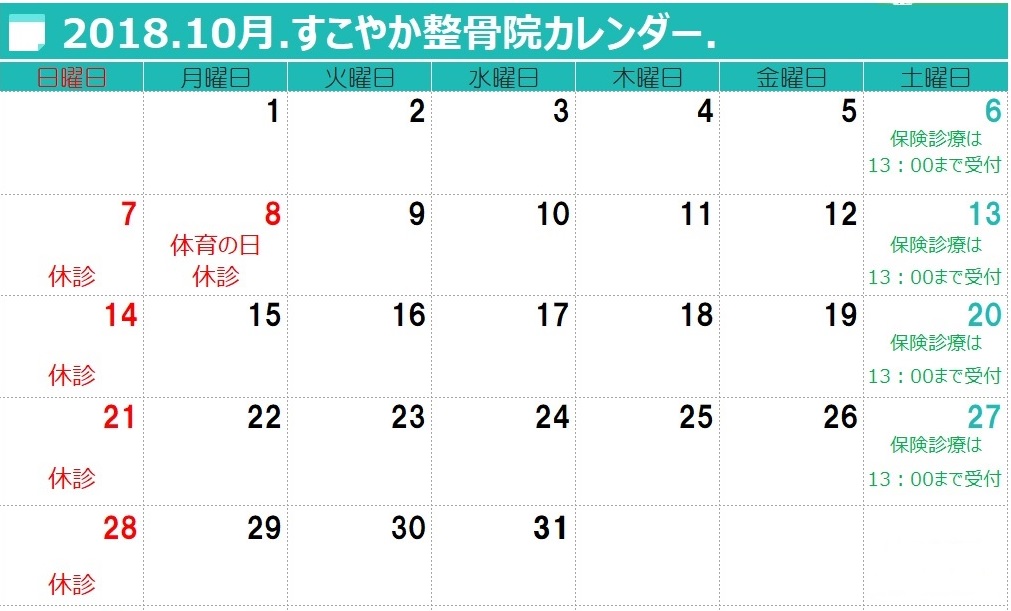 2018.10月すこやかカレンダー